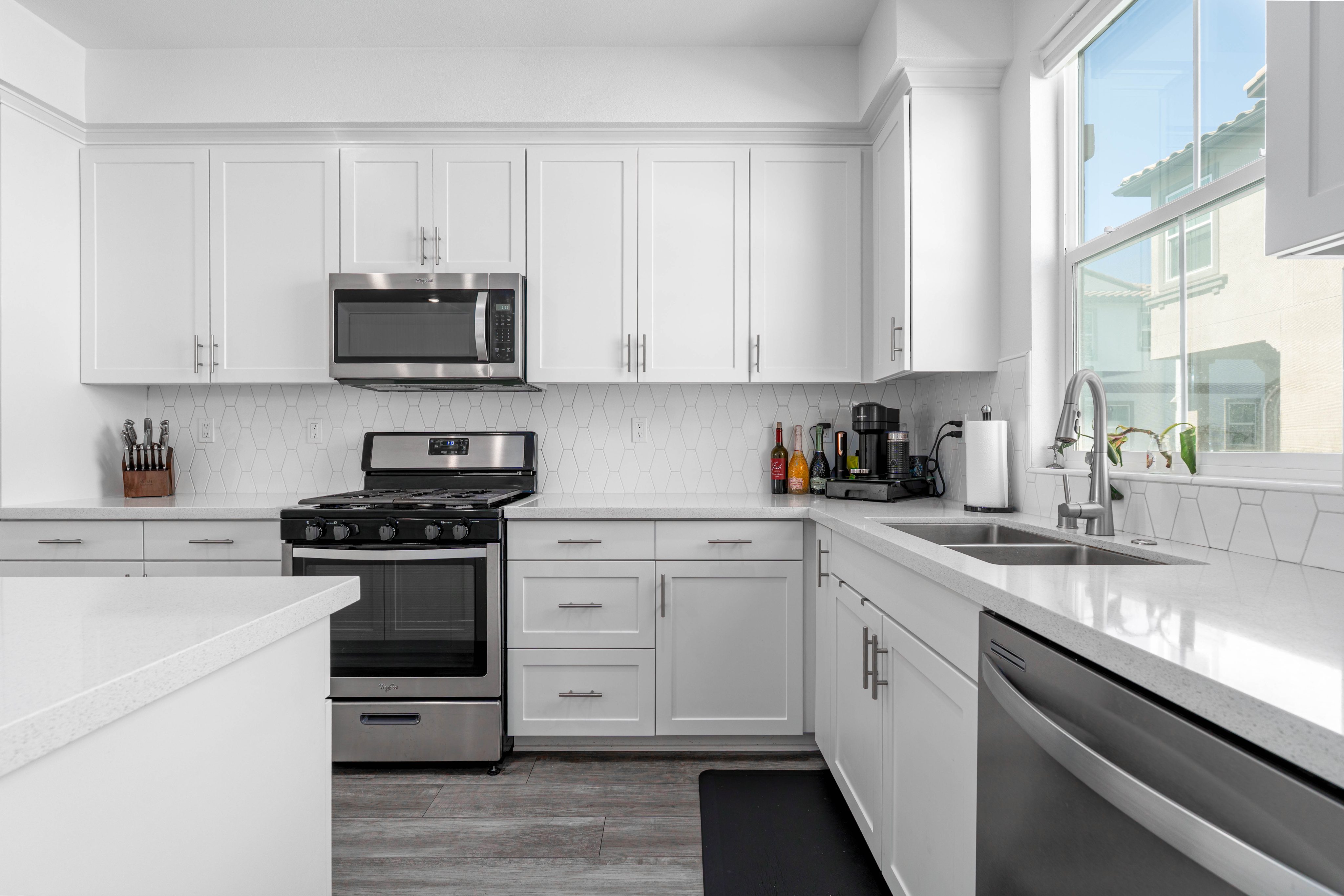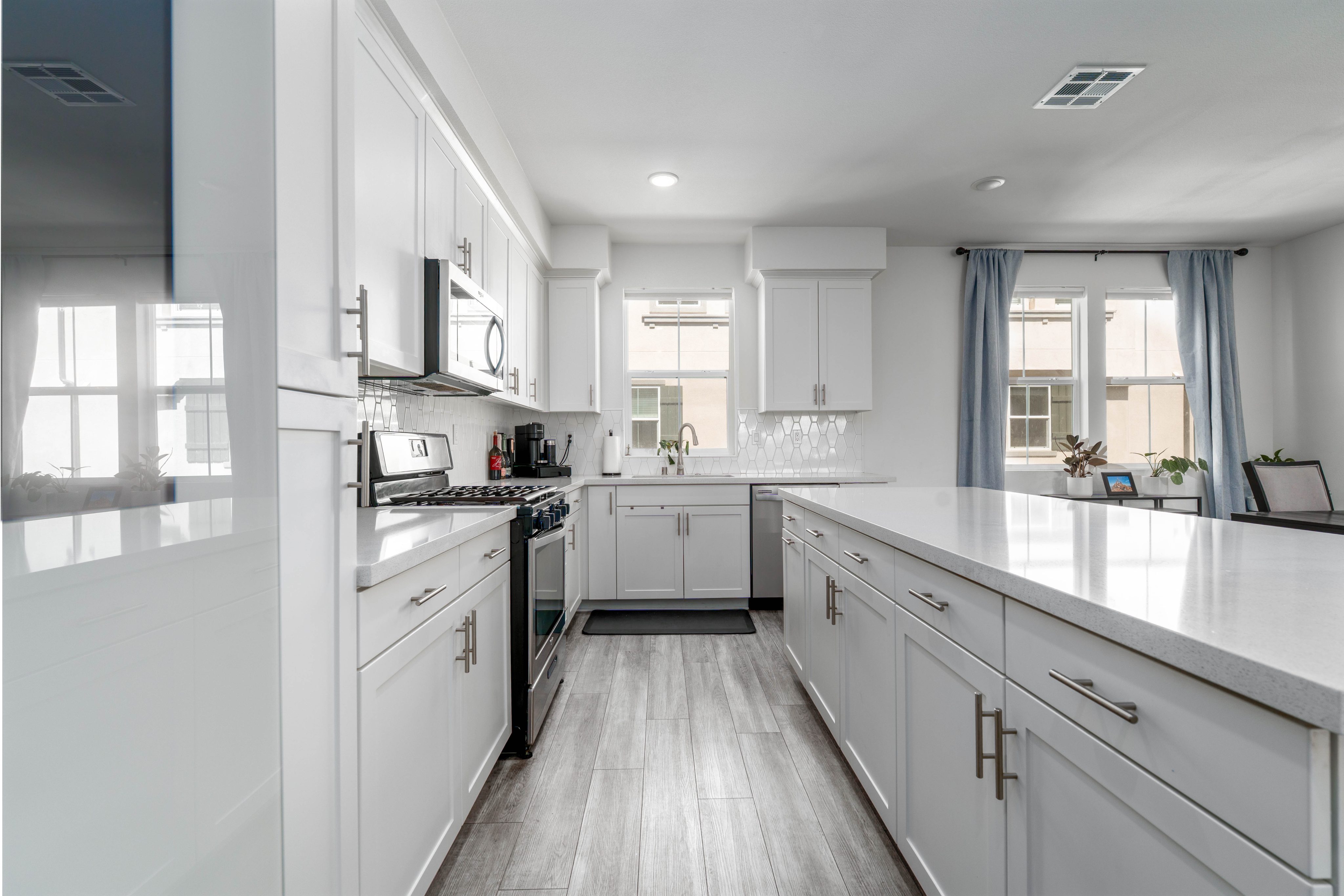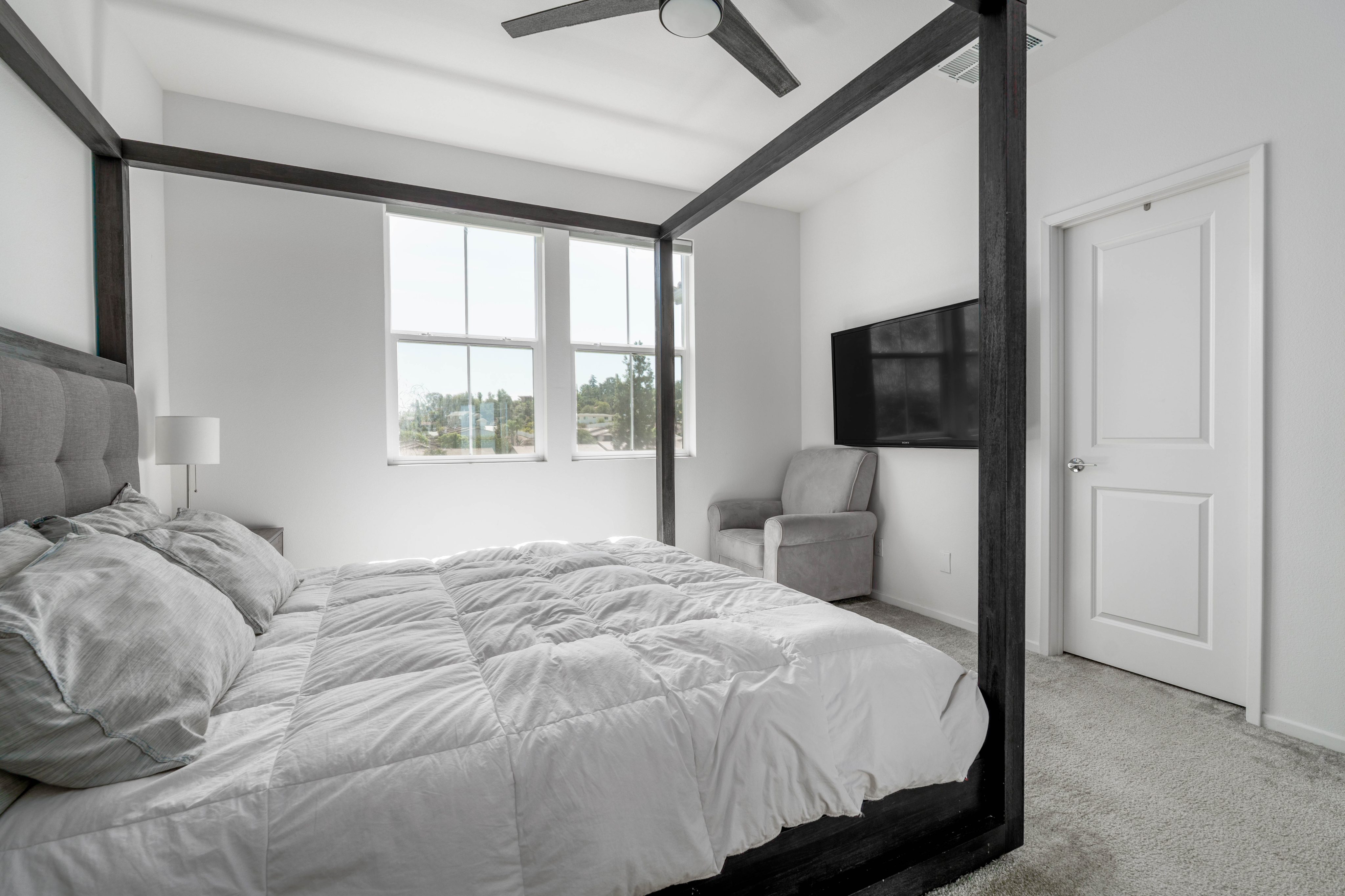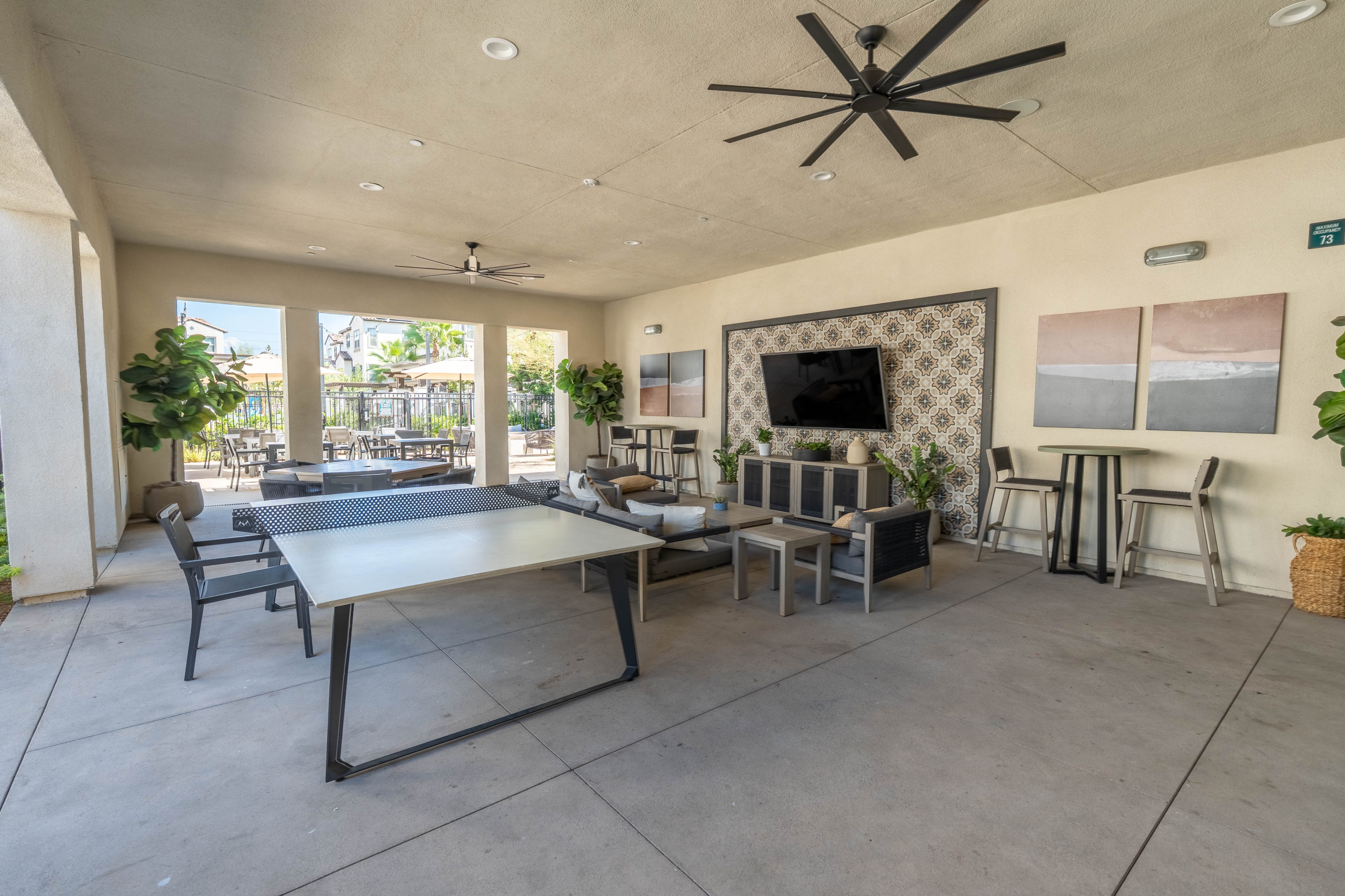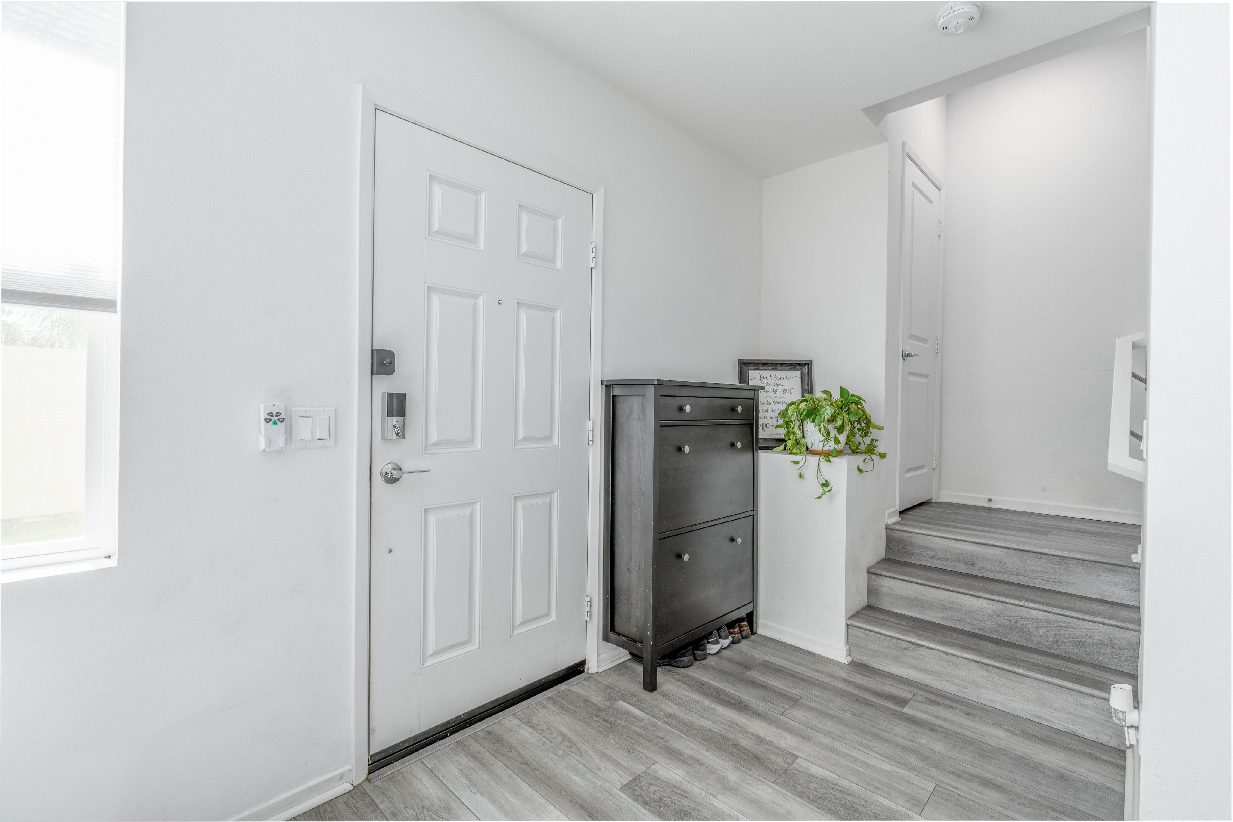 The LARGEST floor plan in this sought-after Escondido community, offering modern living across all levels and PAID OFF solar! The home features a versatile first-floor flex space, a spacious open-concept main living area, and a bright kitchen with a 5 burner stove, Smart refrigerator, and tiled backsplash. The primary suite includes an upgraded tiled shower and walk-in closet, while all bedrooms are equipped with ceiling fans for year-round comfort. Stylish upgrades include luxury vinyl plank flooring throughout the main living areas, tiled bathrooms, and a private deck off the living room. Energy efficiency is built in with a tankless water heater, Quick Cool fan system, and a 3.5kW solar system, complemented by smart home features such as app-controlled lighting, thermostats, and a garage door with integrated camera. Residents enjoy resort-style amenities including a sparkling pool and spa, fire fit, lounge area, multiple BBQs, a children's playground, and a shared outdoor patio with TV and seating. An indoor community gym is also planned. Perfectly situated at the quiet back end of the neighborhood, the home offers added privacy while still being close to everyday conveniences. Just off Interstate 15, you'll have quick access to stores, gas stations, and vibrant dining. This turnkey home combines comfort, innovation, and location -- ready for its next chapter.