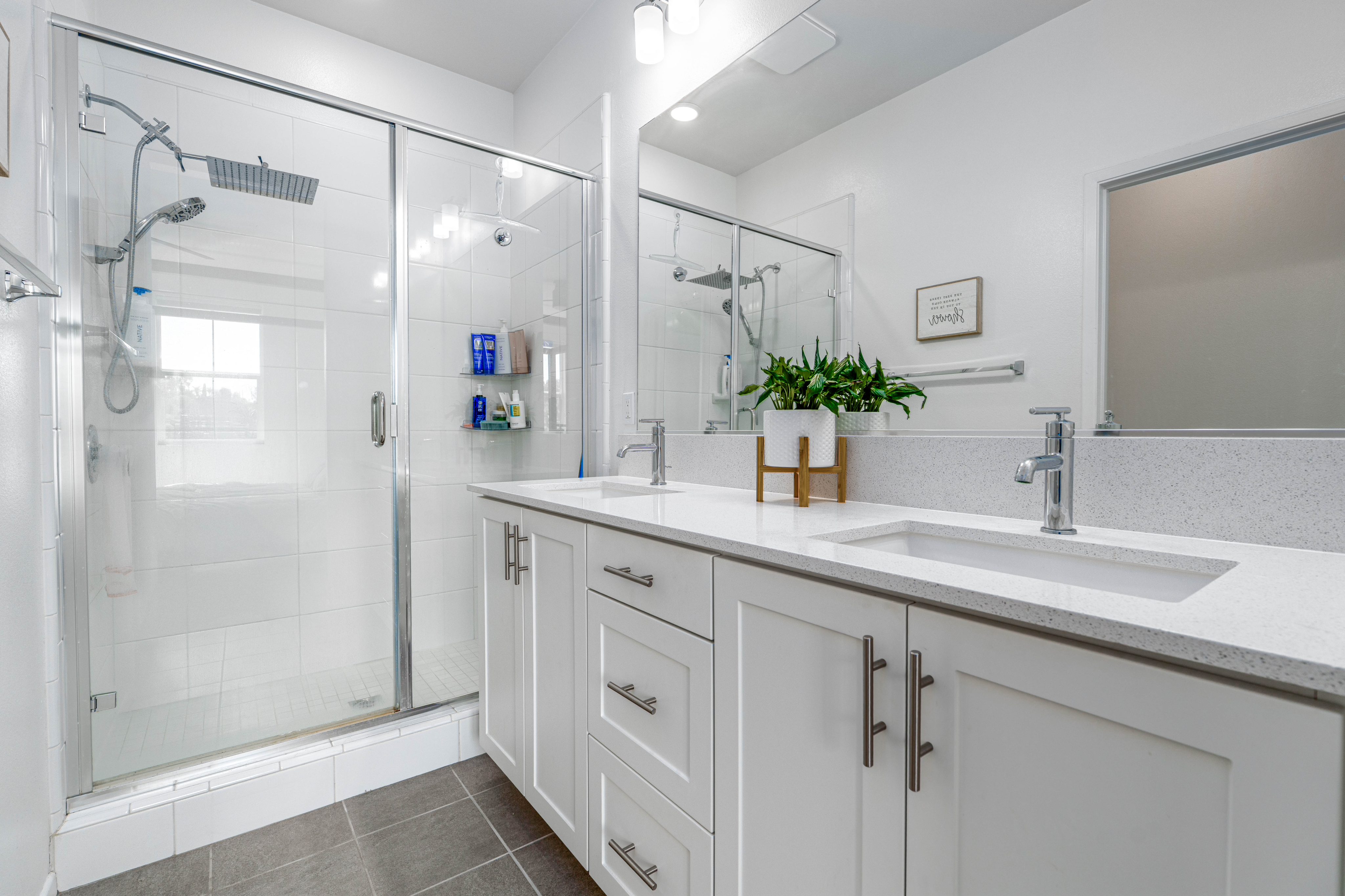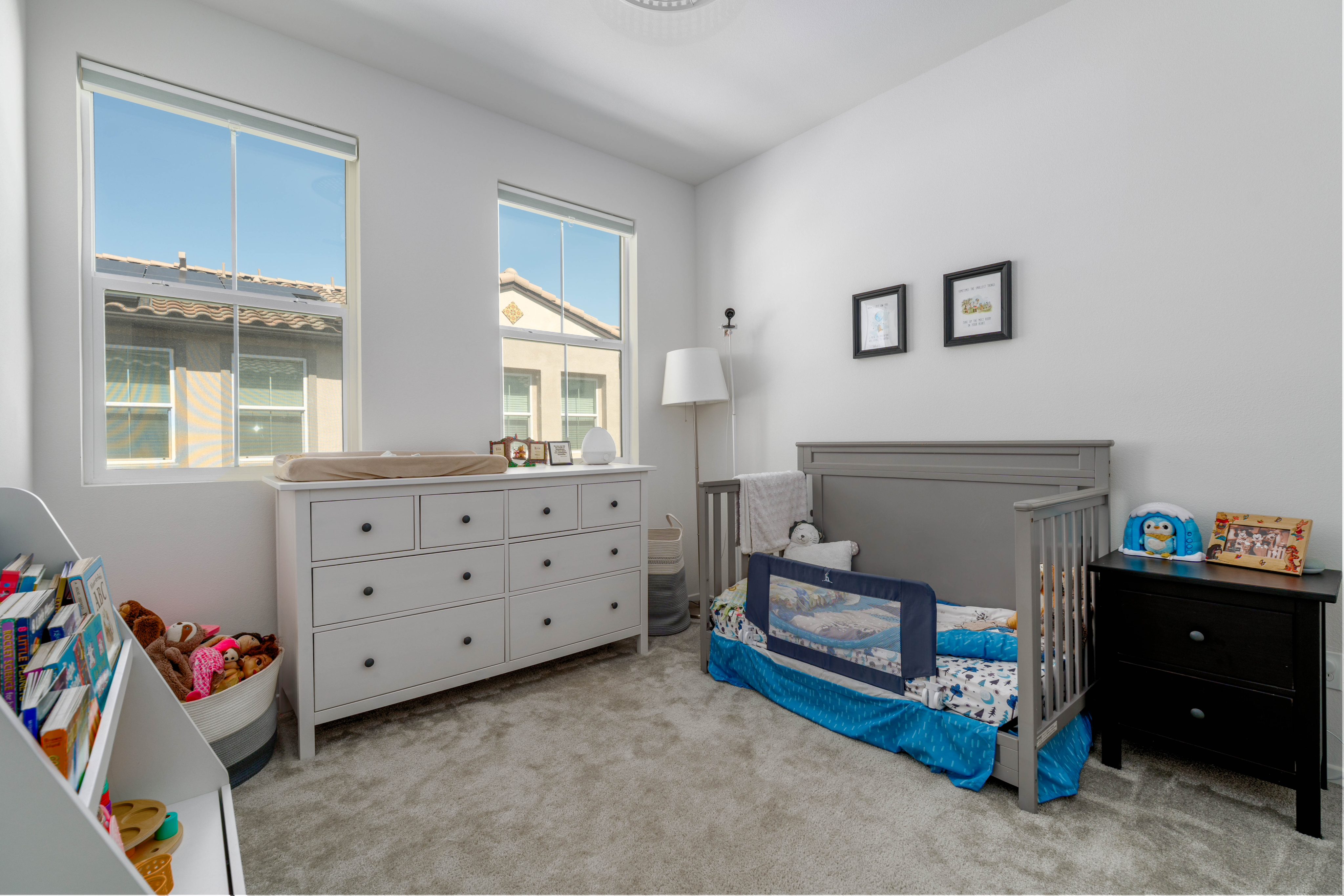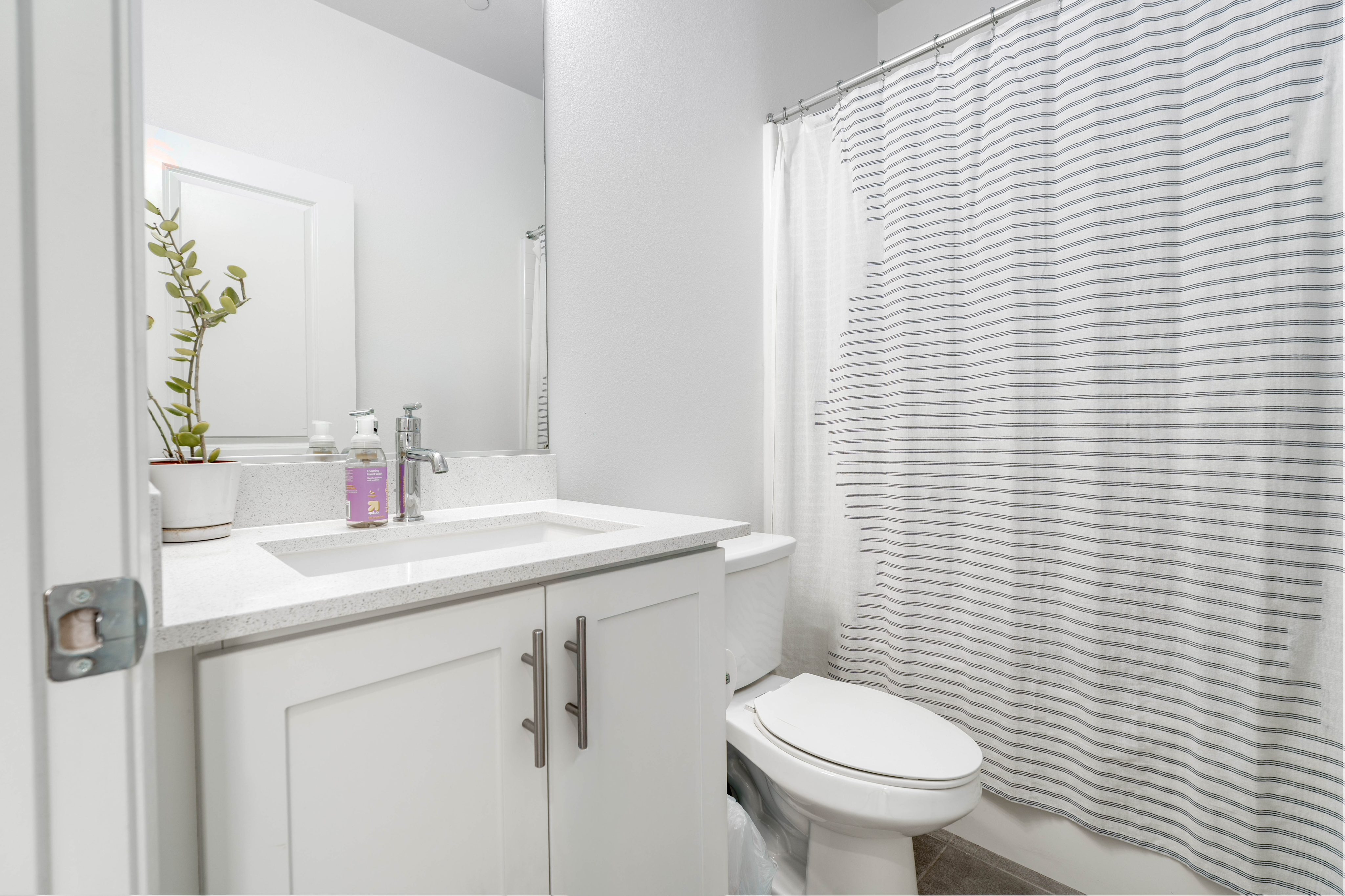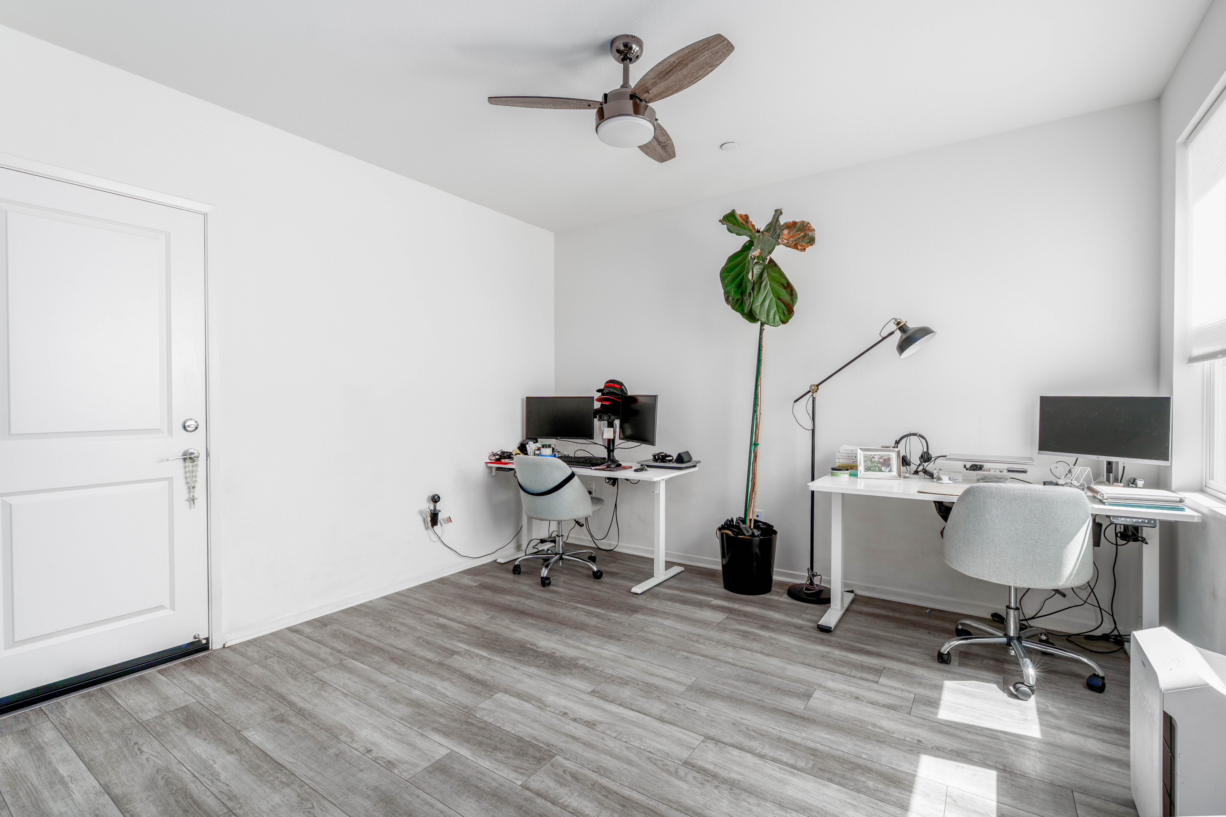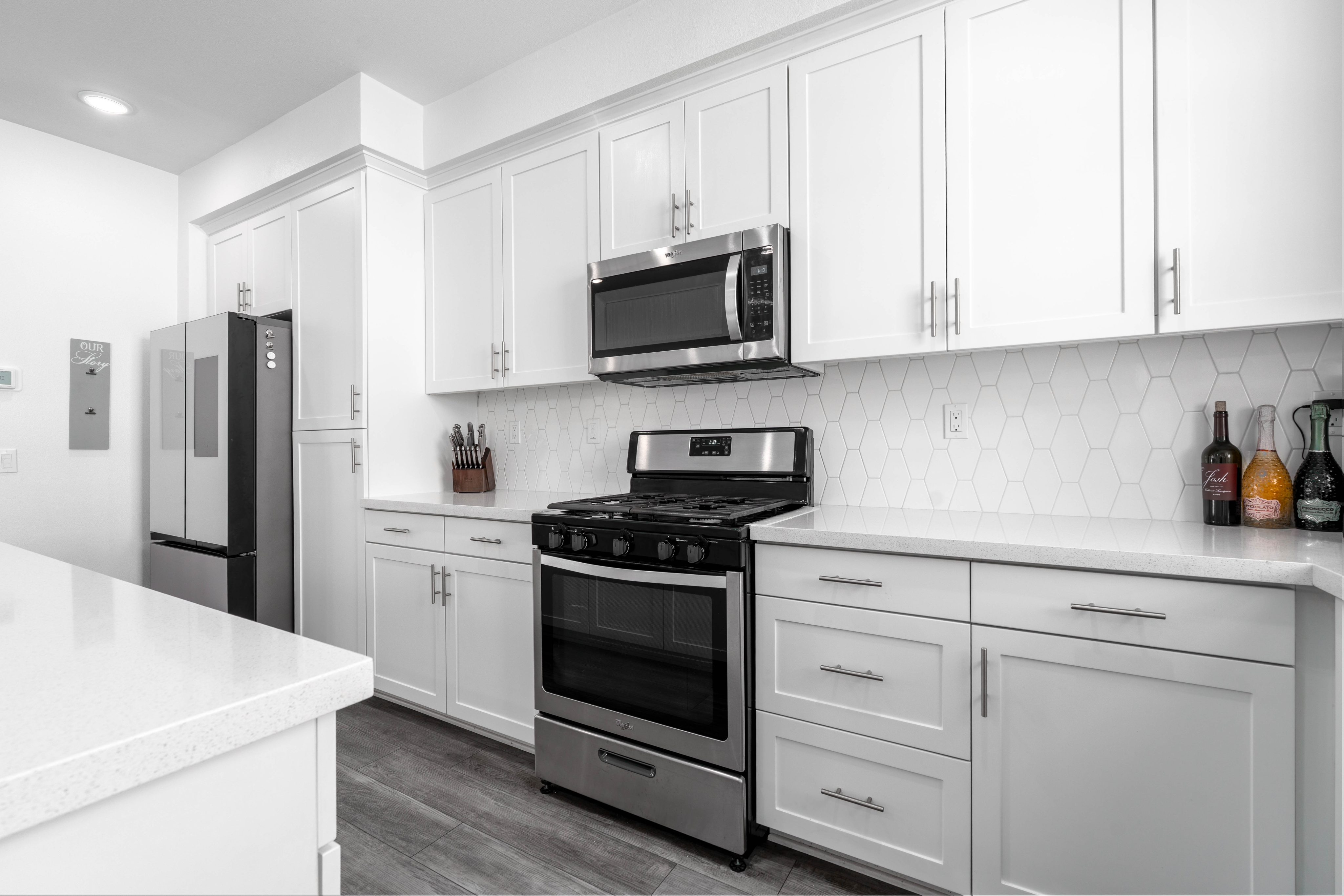 The LARGEST floor plan in this sought-after Escondido community, offering modern living across all levels and PAID OFF solar! The home features a versatile first-floor flex space, a spacious open-concept main living area, and a bright kitchen with a 5 burner stove, Smart refrigerator, and tiled backsplash. The primary suite includes an upgraded tiled shower and walk-in closet, while all bedrooms are equipped with ceiling fans for year-round comfort. Stylish upgrades include luxury vinyl plank flooring throughout the main living areas, tiled bathrooms, and a private deck off the living room. Energy efficiency is built in with a tankless water heater, Quick Cool fan system, and a 3.5kW solar system, complemented by smart home features such as app-controlled lighting, thermostats, and a garage door with integrated camera. Residents enjoy resort-style amenities including a sparkling pool and spa, fire fit, lounge area, multiple BBQs, a children's playground, and a shared outdoor patio with TV and seating. An indoor community gym is also planned. Perfectly situated at the quiet back end of the neighborhood, the home offers added privacy while still being close to everyday conveniences. Just off Interstate 15, you'll have quick access to stores, gas stations, and vibrant dining. This turnkey home combines comfort, innovation, and location -- ready for its next chapter.