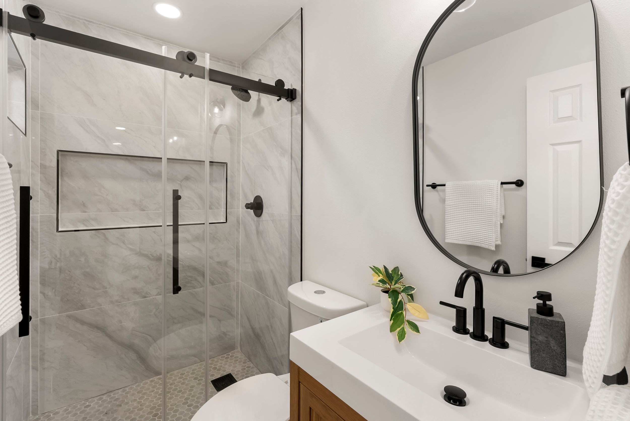 The bathrooms have been elegantly redesigned with sophisticated finishes, creating spa-like retreats within the home. Enhanced by designer light fixtures, fresh interior and exterior paint, and thoughtfully selected upgrades throughout, the home exudes both style and comfort.