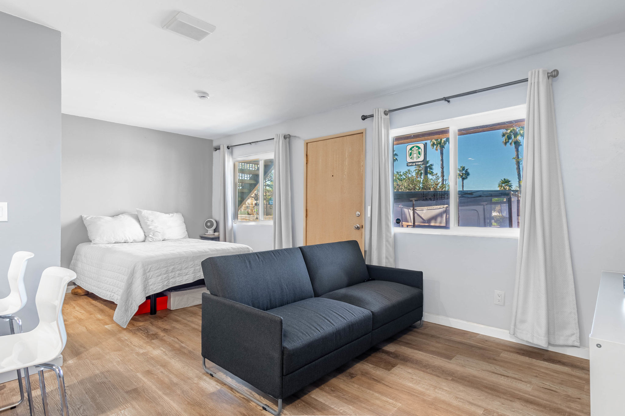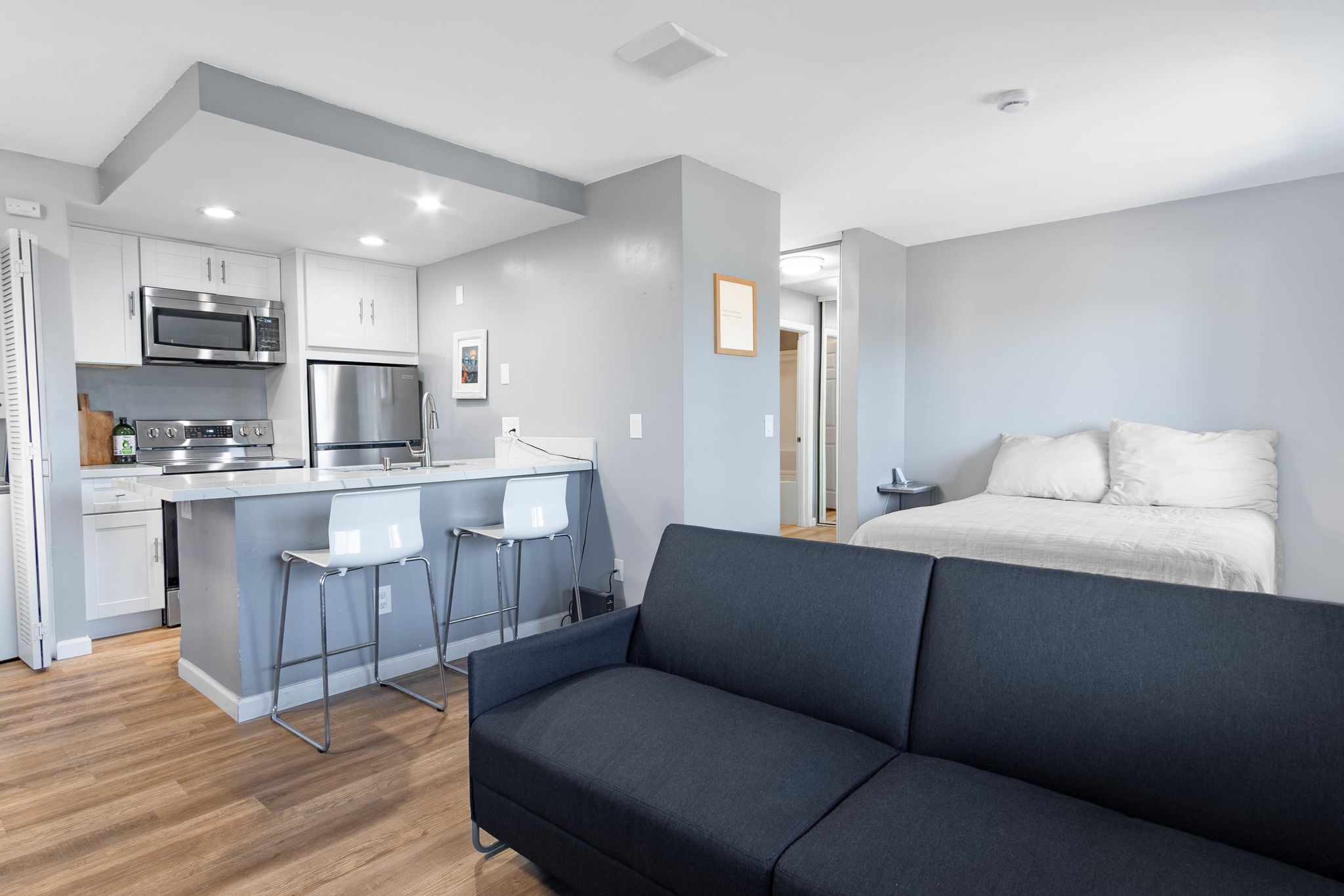 Studio floor plan that seamlessly integrates living and sleeping areas for maximum functionality